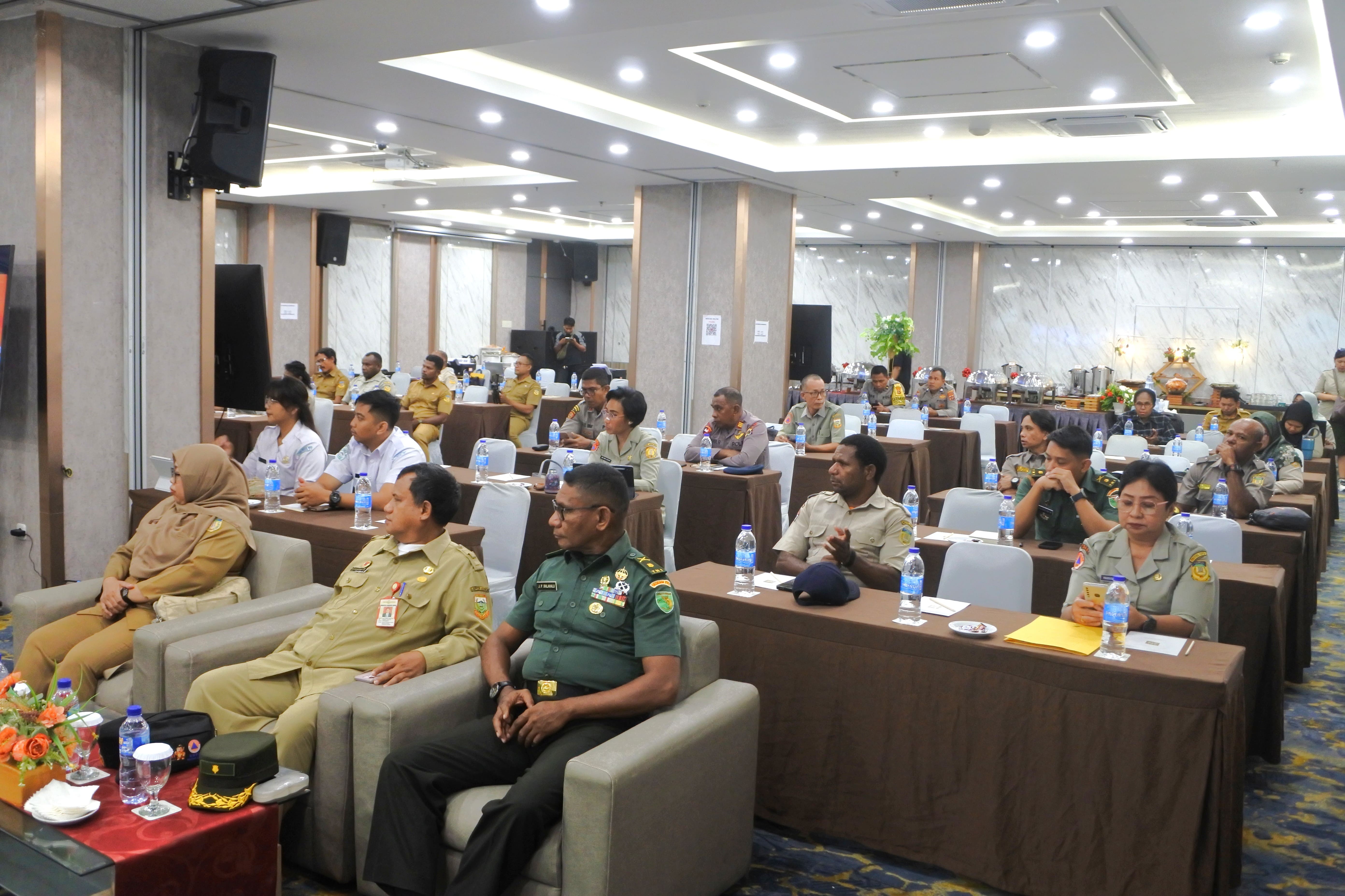 Kegiatan tersebut dihadiri oleh instansi terkait serta unsur TNI/Polri, BMKG, PMI, RAPI, BPBD Kabupaten/Kota se-Papua, dan perwakilan dari Dinas Pekerjaan Umum. Kehadiran berbagai unsur ini menunjukkan pentingnya sinergi lintas sektor dalam penanganan bencana, khususnya pada tahap rehabilitasi dan rekonstruksi.