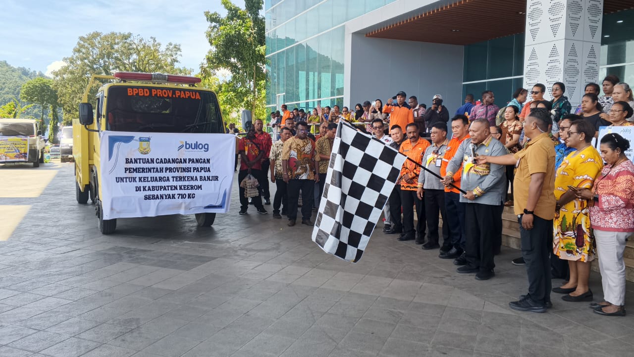 Jayapura — Wakil Gubernur secara resmi melepas bantuan sembako bagi masyarakat terdampak bencana banjir di Kabupaten Keerom. Kegiatan pelepasan bantuan tersebut dilaksanakan di Kantor Gubernur pada Kamis, 18 Desember 2025.