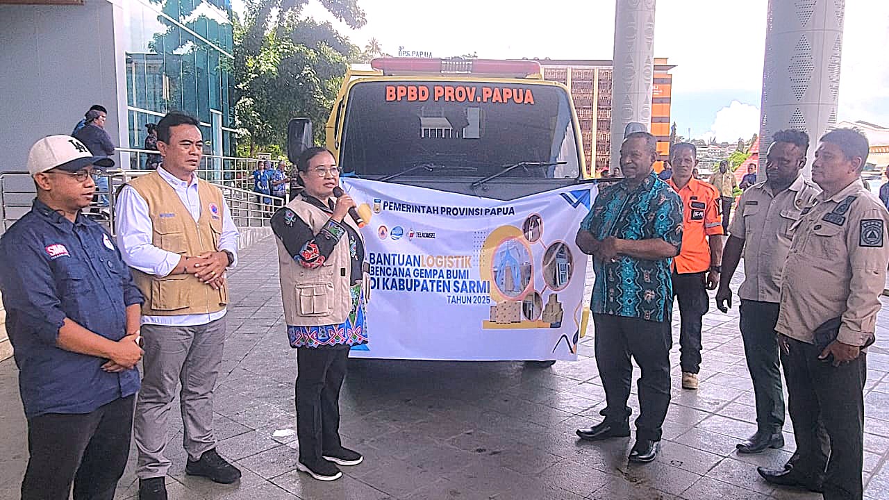 Jayapura – Penjabat (PJ) Sekretaris Daerah Provinsi Papua, Ibu Suzana Wanggai, secara resmi melepas bantuan logistik untuk korban bencana gempa bumi di Kabupaten Sarmi. Acara pelepasan berlangsung di halaman Kantor Gubernur Papua, Jumat (26/9/2025).