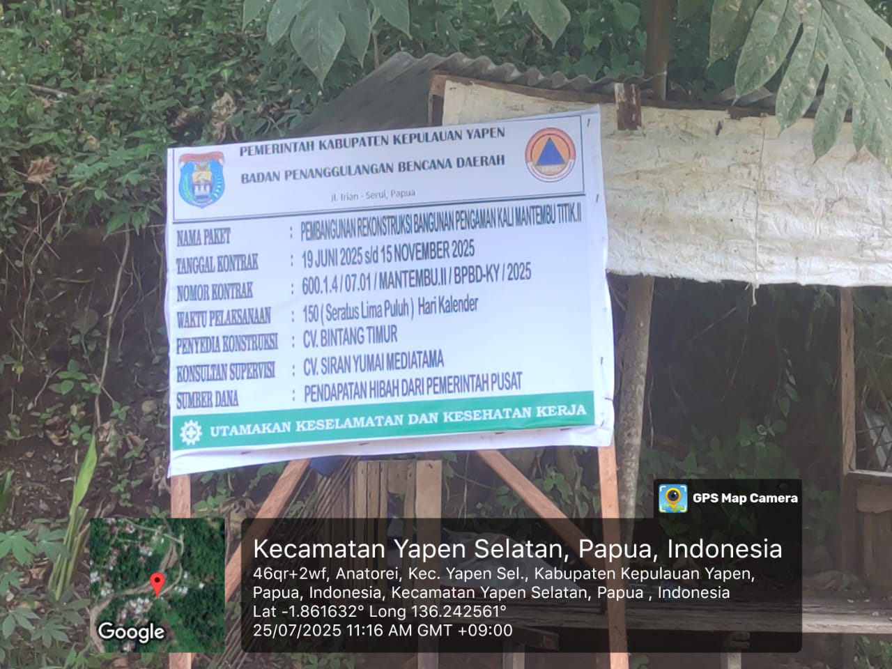 Yapen,25 Juli 2025 — Bidang Rehabilitasi dan Rekonstruksi Badan Penanggulangan Bencana Daerah (BPBD) Provinsi Papua melaksanakan kegiatan Monitoring dan Evaluasi (Monev) terhadap pelaksanaan Dana Hibah Tahun Anggaran 2024 yang dilaksanakan pada tahun 2025 di Kabupaten Kepulauan Yapen.