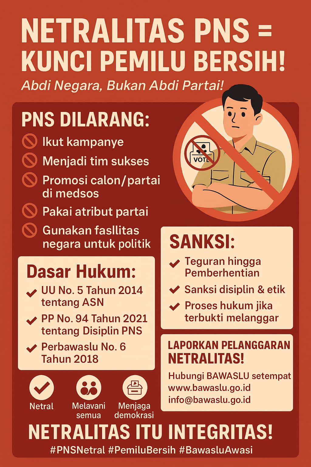 Mari jaga netralitas demi pemilu yang bersih dan demokrasi yang sehat.